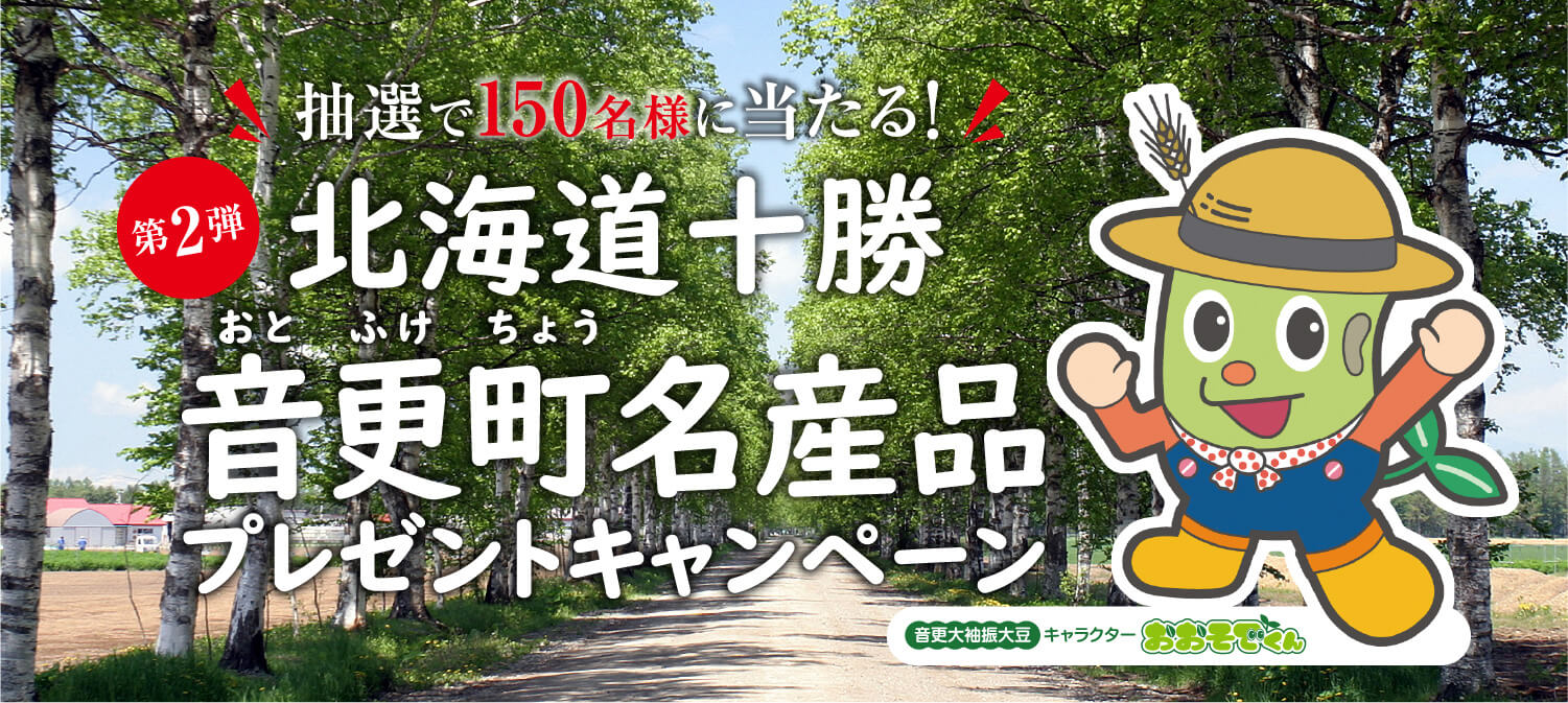 つぶあん 300g/くろまめきなこ 100g/きなこねじり 70g/おとふけうどん 250g/おとふけそうめん 250g/十勝豆スイーツ金時 106g/十勝豆スイーツかぼちゃぜんざい 106g/音更大袖振大豆パスタ 180g/音更大袖コーヒードリップパック 15g/くろまめコーヒードリップパック 15g/ブロッコリーら~麺 1食/ナッツtoオリーブオイル十勝産大豆 90g/よつ葉 バターミルクパンケーキミックス 450g